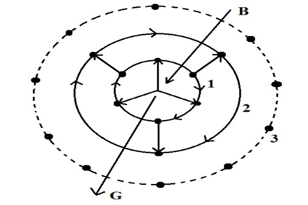 Figure 2 depicts al-Suri’s organisational-structure theory. The centralised unit is circle 1, the circle of de-centralised units is 2, and the Da’wah circle is 3, in that figure. Note that the entire structure is governed by the institution of bay’at (depicted by arrow B). Note, also, that as one moves from circles 1 to 3, individuals and units become more geographically dispersed (as depicted by arrow G). While individuals and units in circles 1 and 2 are allowed to communicate with each other and to their adjacent circles (depicted through connecting arrows), such is not the case with the outer circle 3.